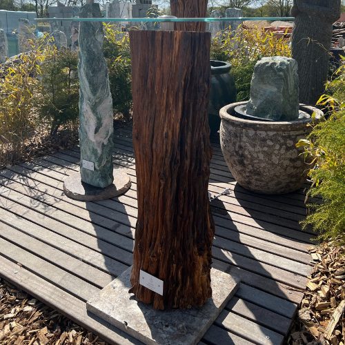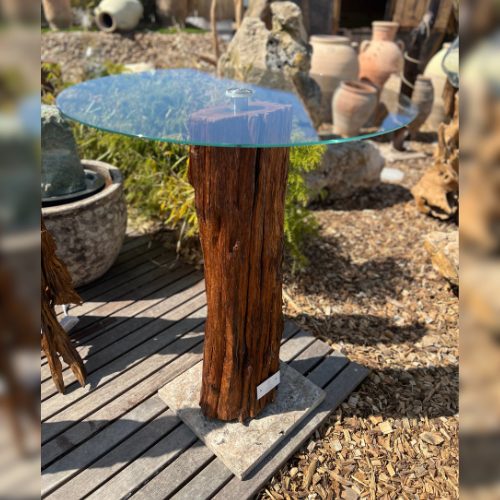 Matériaux : Chêne massif, verre sécurit, pierre naturelle.