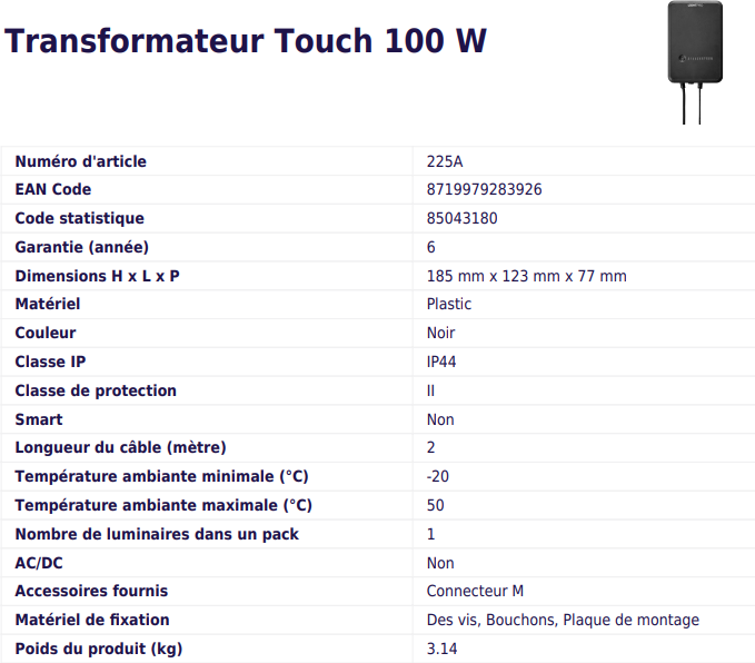 TRANSFORMATEUR TOUCH 100 W | LIGHTPRO