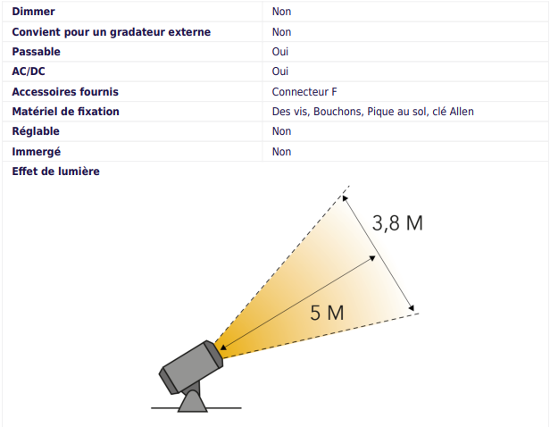 • Éclairage jusqu’à 5 mètres