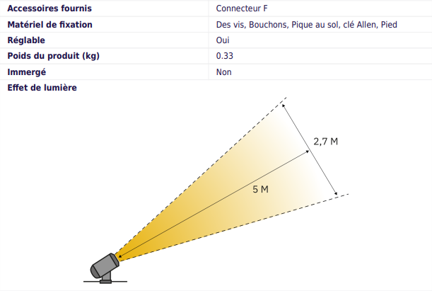 • Éclairage jusqu’à 5 mètres