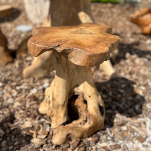 Ces tabourets, sculptés à partir de racines de teck, sont le complément parfait à la table de 120 cm en racine d’arbre. Chaque tabouret, unique, présente des formes organiques et naturelles qui reflètent l’authenticité du bois. Les lignes irrégulières et les textures brutes des racines confèrent à ces assises un caractère artistique et rustique, tout en assurant une solidité et une durabilité remarquables. Leurs courbes naturelles s’harmonisent parfaitement avec la table, créant un ensemble cohérent et harmonieux, idéal pour un intérieur à l’esprit nature ou un espace contemporain.