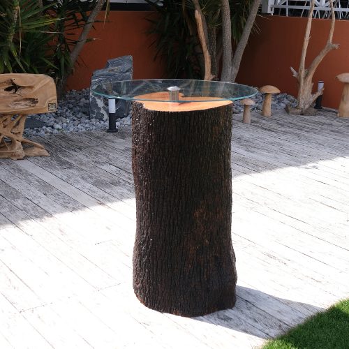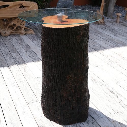 COMMANDE SUR MESURE  : Choisissez la forme et l’épaisseur du plateau de verre ainsi que la pièce de bois et sa finition.