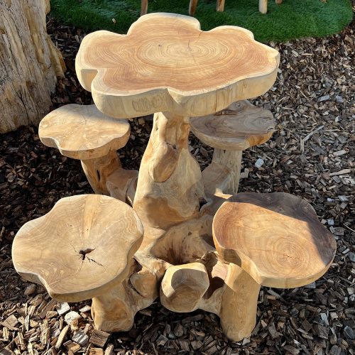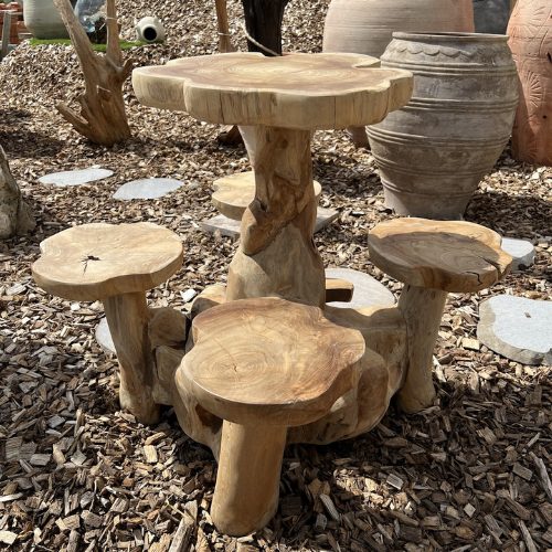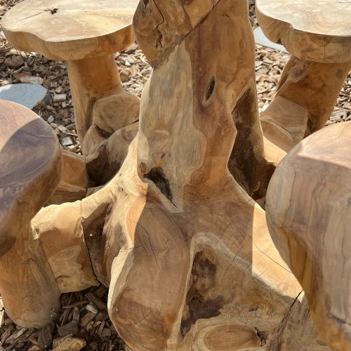 Cette table pour enfant est fabriquée à partir de racines de teck soigneusement assemblées, créant une pièce unique aux formes organiques et naturelles. Le bois de teck, réputé pour sa robustesse et sa durabilité, est ici mis en valeur par des lignes courbes et irrégulières, évoquant l’essence même de la nature. Le plateau, d’une hauteur adaptée aux enfants, repose sur une base sculpturale faite de racines entrelacées, offrant à la fois stabilité et esthétique. Chaque détail raconte l’histoire du bois, avec des textures brutes et des nuances riches, faisant de cette table un meuble à la fois ludique, écologique et artistique. Elle invite à la créativité et à l’imagination.
